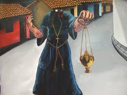 Un sudor frío, con un nerviosismo expectante se apoderó de Carlos Alberto, quien de pronto paró su caminar y se encontró cara a cara con la singular figura. Se aterró, el temor ante lo inesperado hizo caer el cigarrillo de sus labios y una sequedad en la garganta amargó su boca cuando con ojos desorbitados pudo constatar que la figura humanoide que tenía frente a sí era la de un fraile, por el tradicional hábito que cubría su cuerpo, pero con una característica infernal: ¡No tenía cabeza, era descabezado y aún en la penumbra del sitio en mención podía observarse como daba la impresión de recién habérsela cortado por lo sangrante de su cuello!